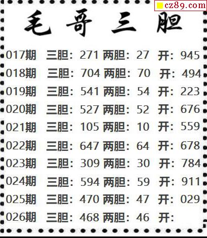 > 毛哥三胆2026026期3d图谜