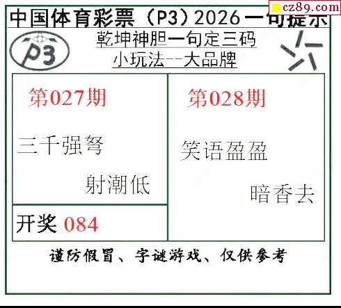 > 乾坤一句定三码26年028期P3图谜